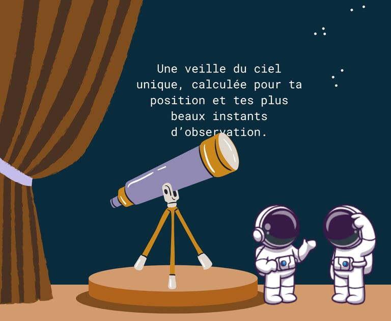 AstroAlert calcule les passages remarquables visibles depuis ton emplacement, en tenant compte de la latitude, de la longitude et du fuseau horaire.